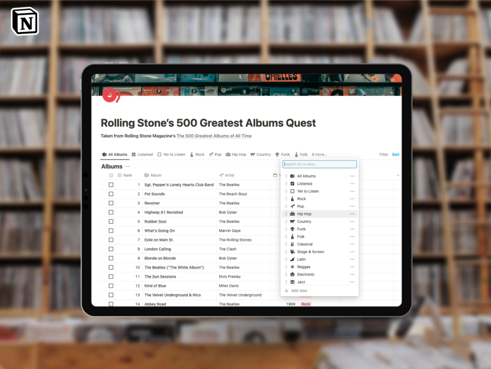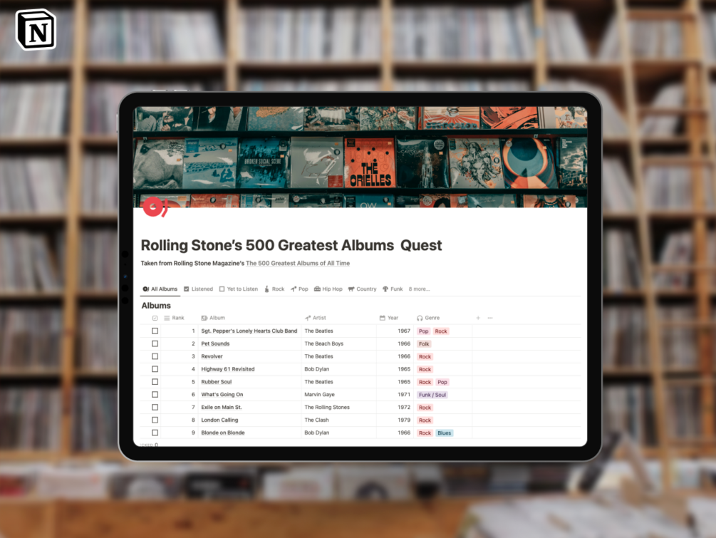 -The Rolling Stone 500 Greatest Albums of All-Time tracker for Notion